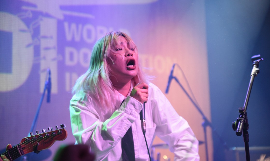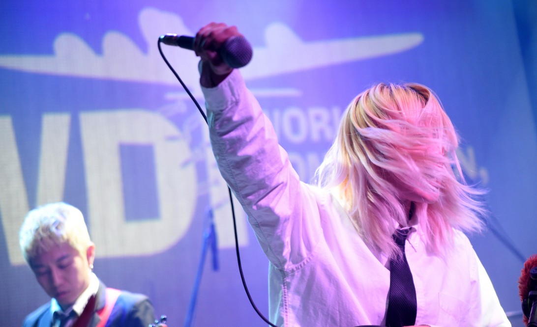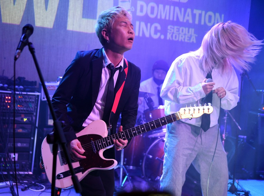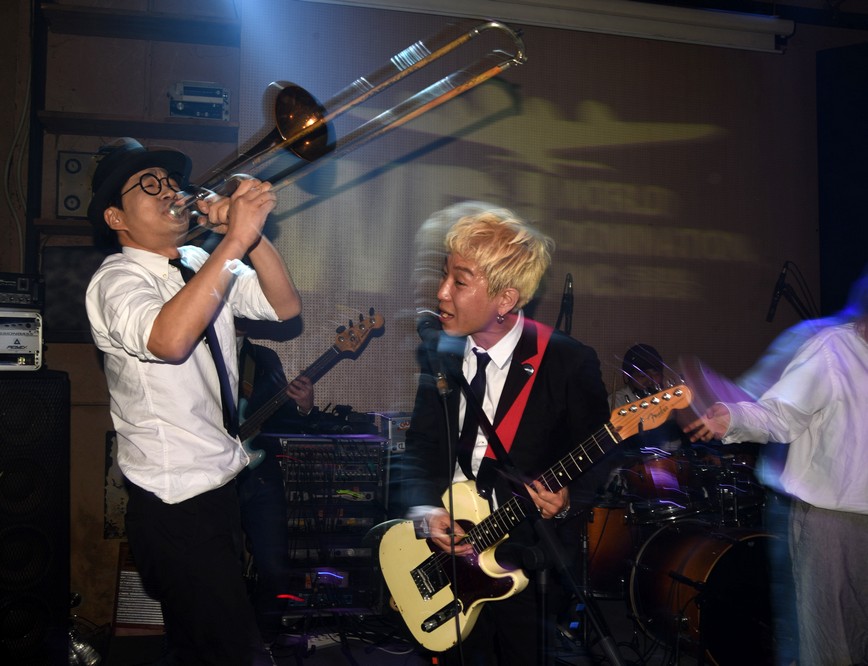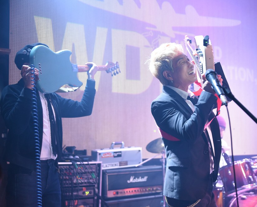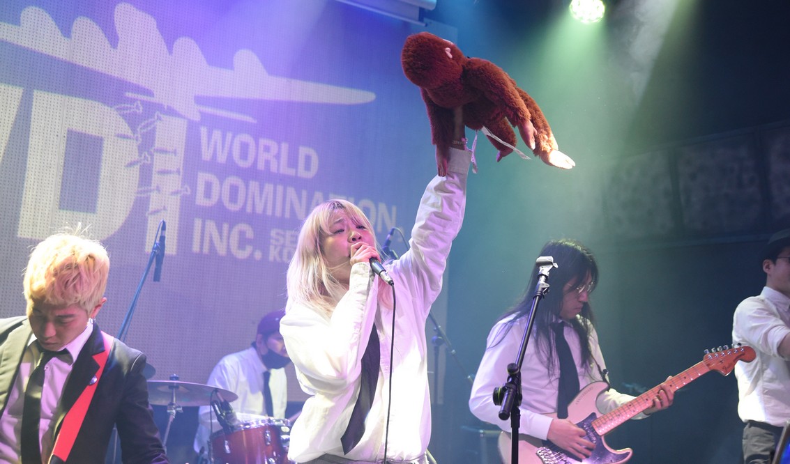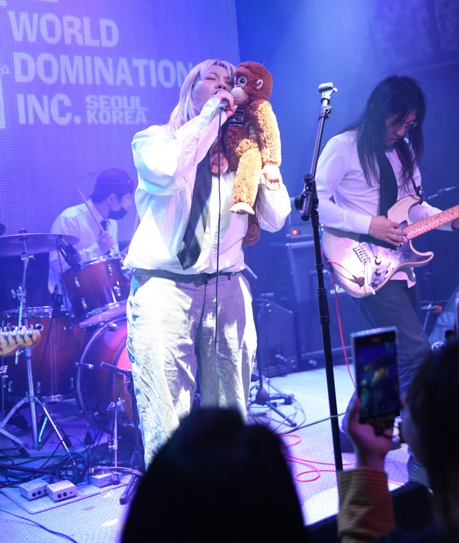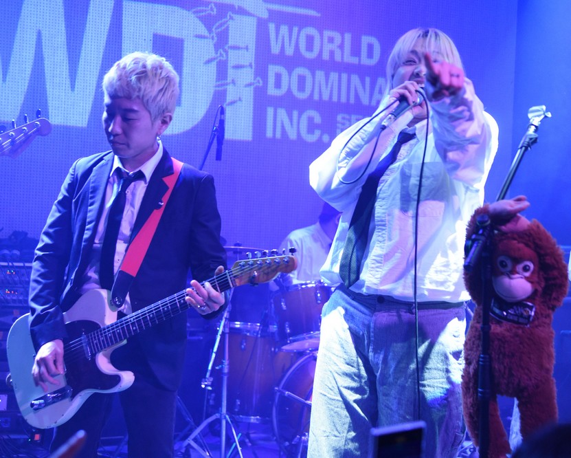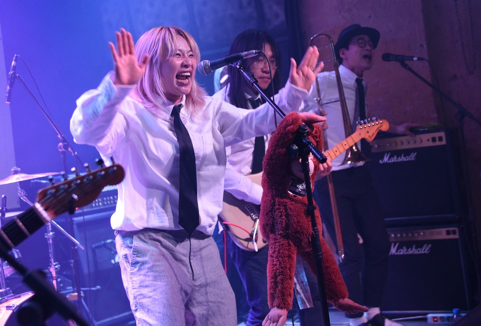 The monkey fell off the mic stand and Trash started playing with it.