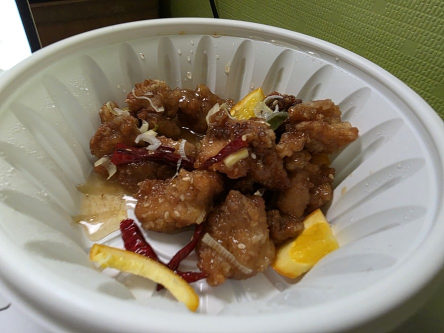 A poor photo of the orange chicken, which was the best I've had in Korea.