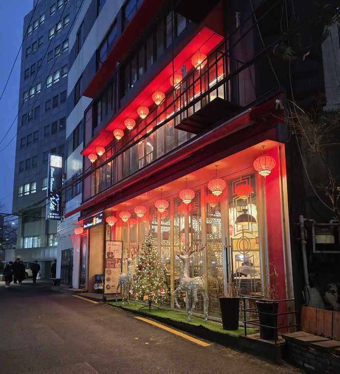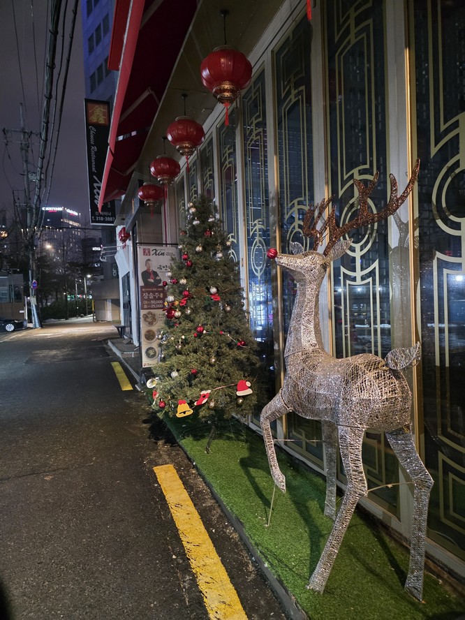 Christmas decorations at a Chinese restaurant.