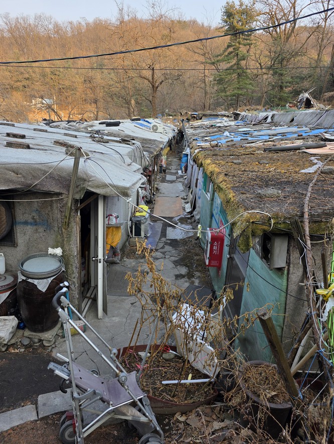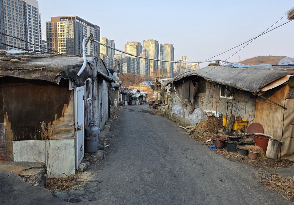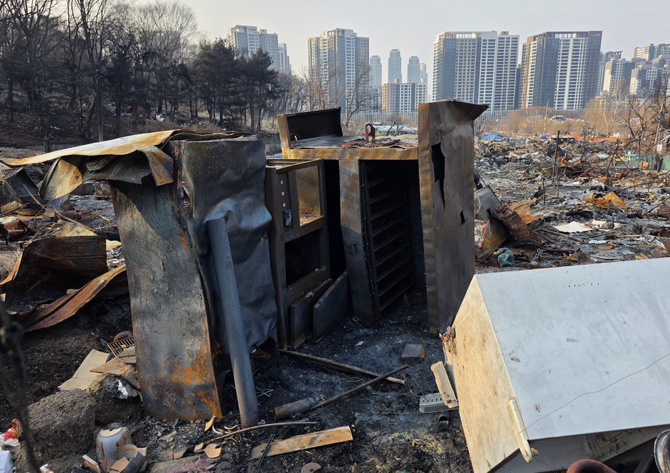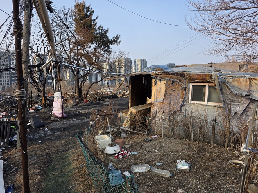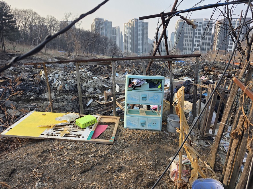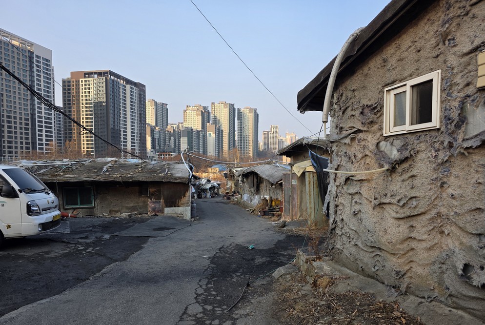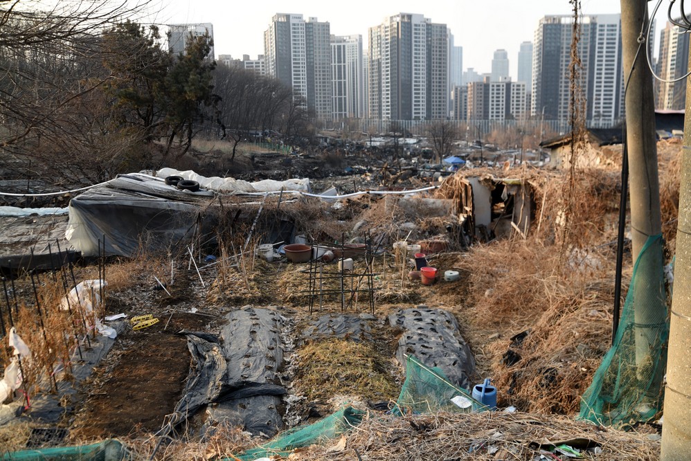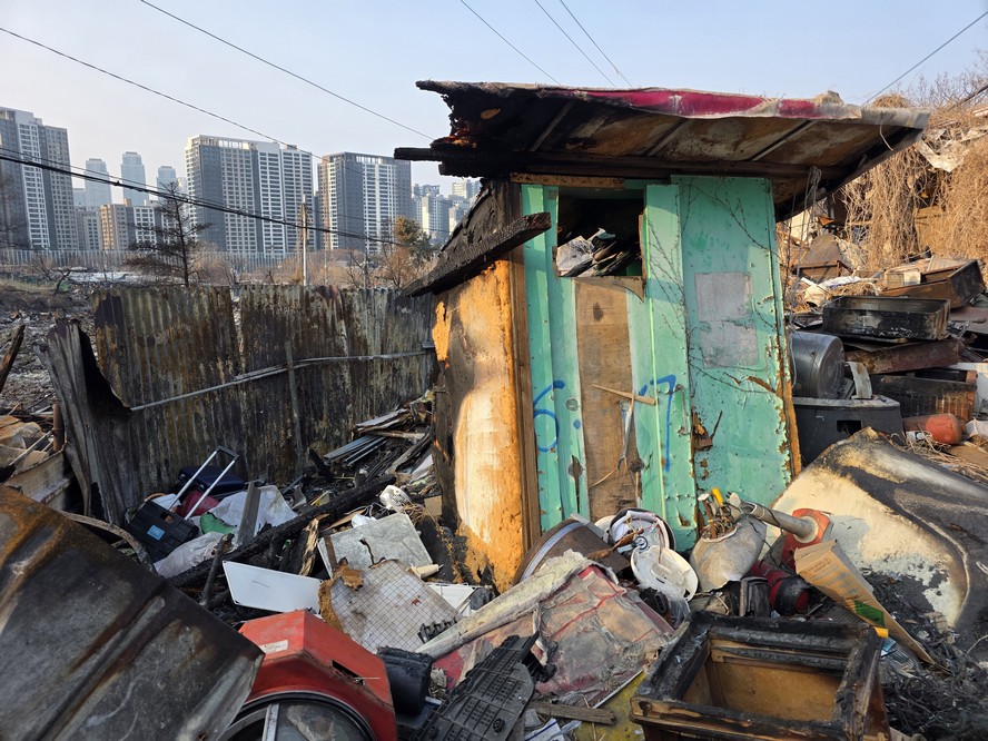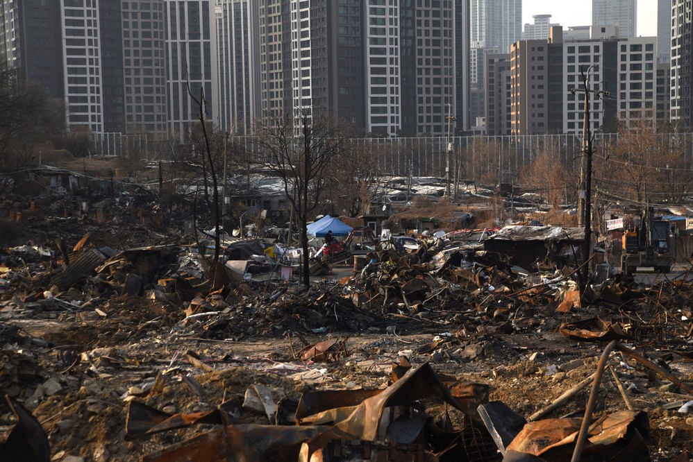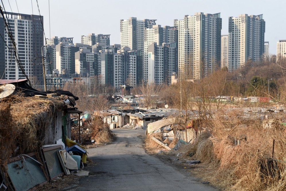 A view looking over the wreckage toward the heavily developed skyline of Gangnam to the north.