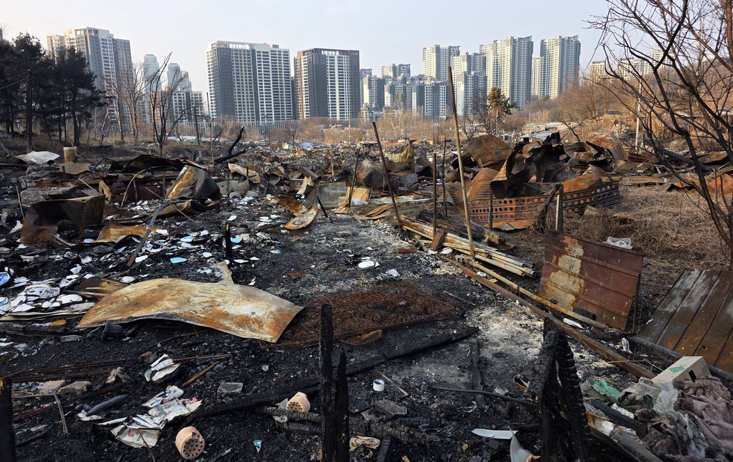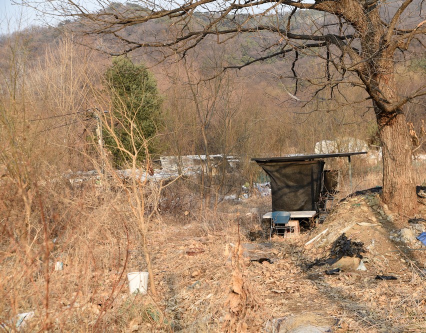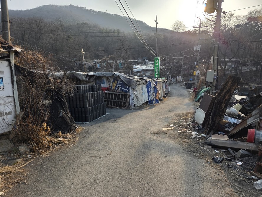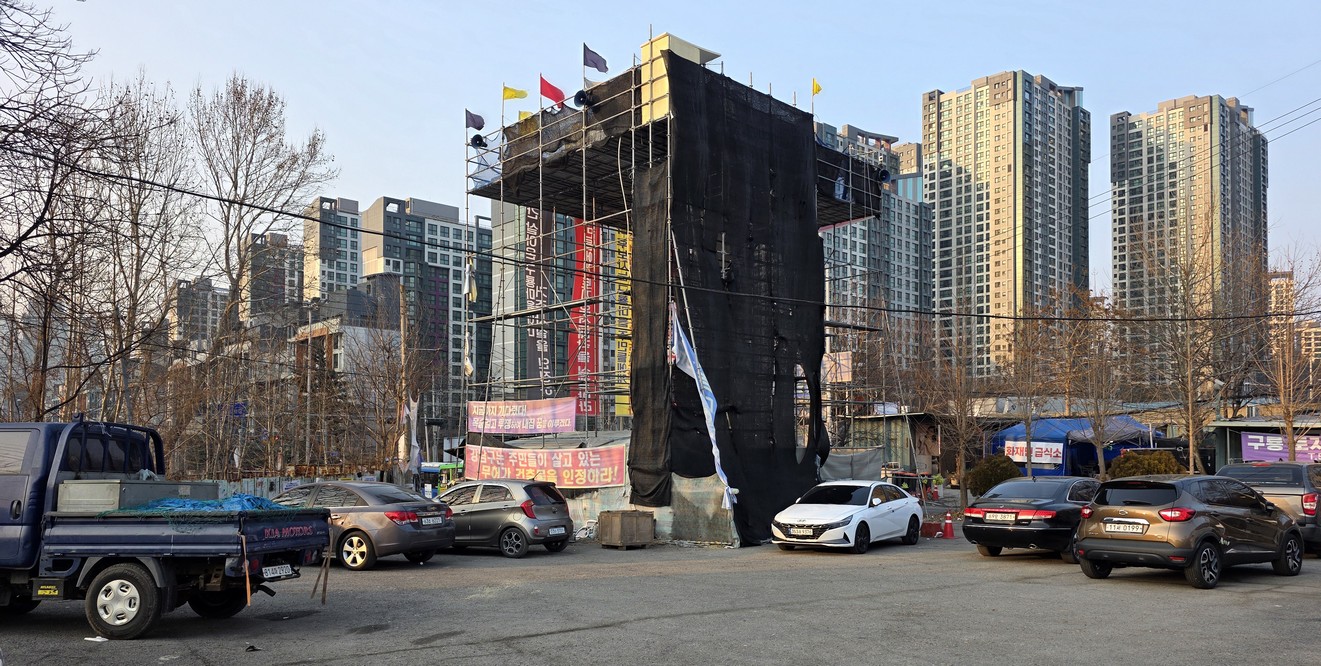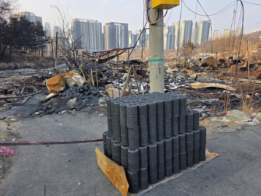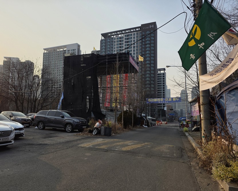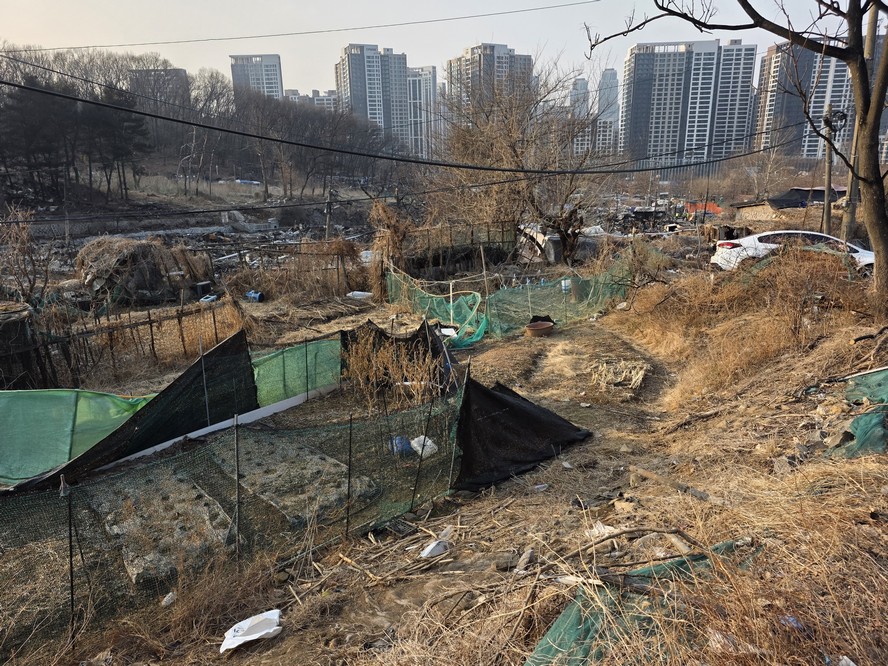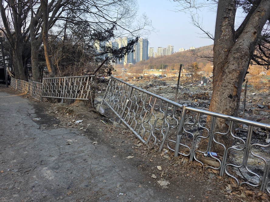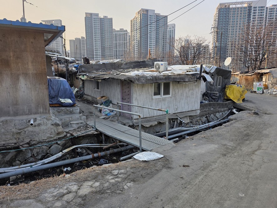 A view looking over the wreckage toward the heavily developed skyline of Gangnam to the north.
