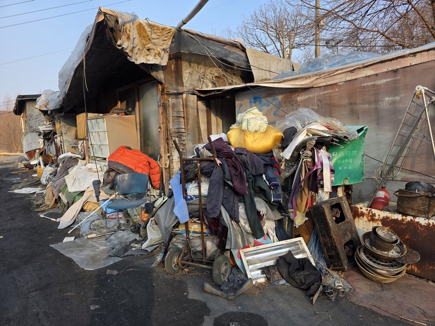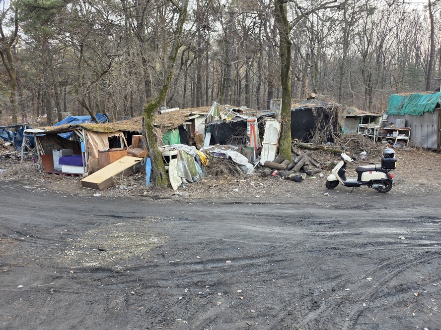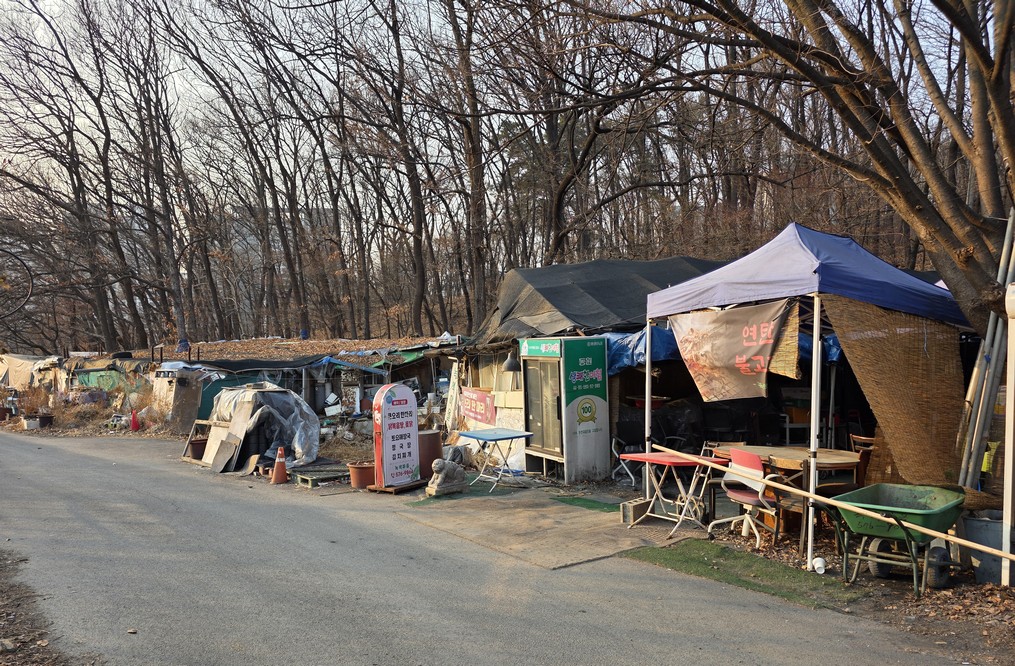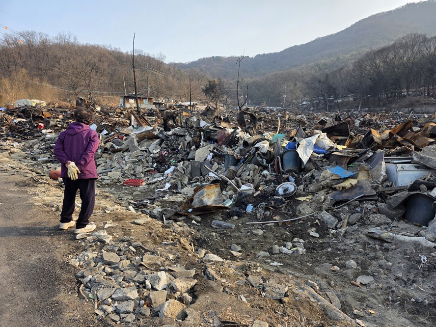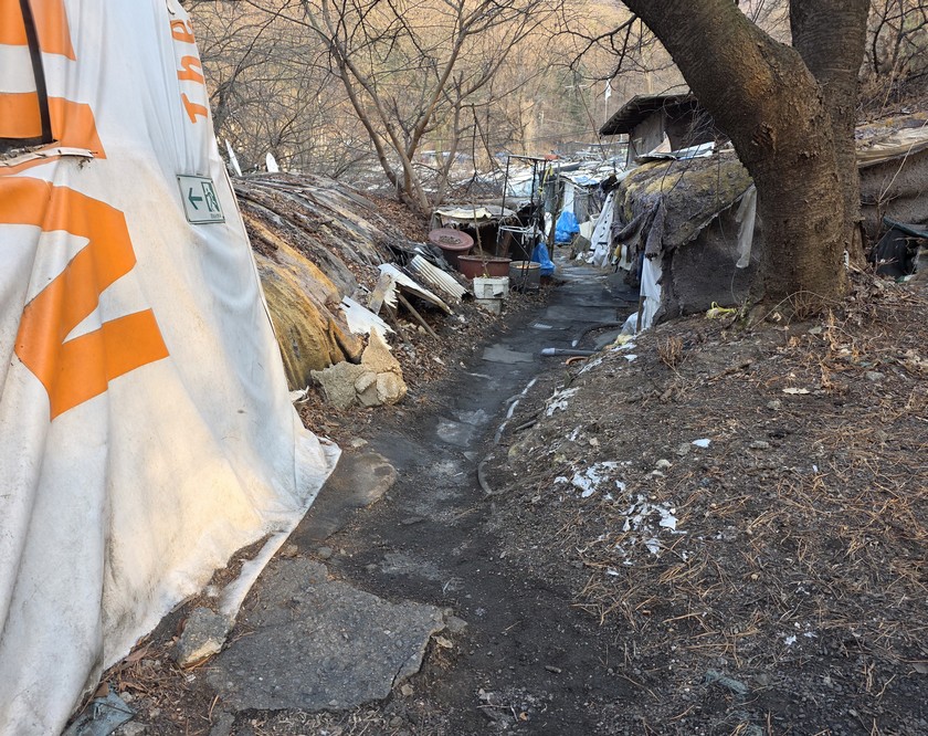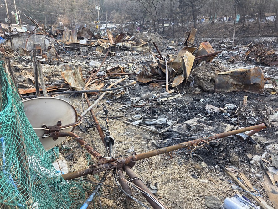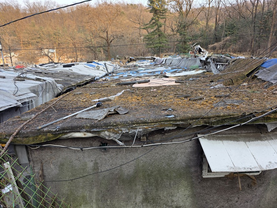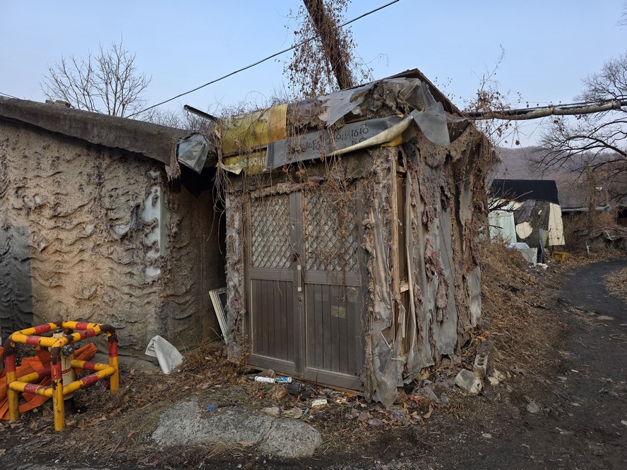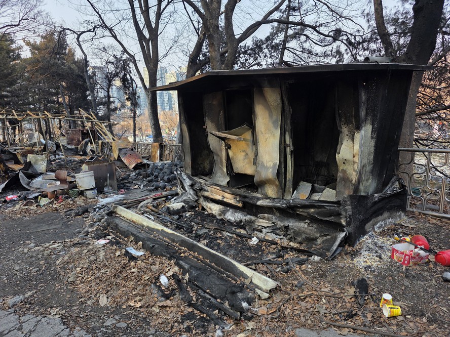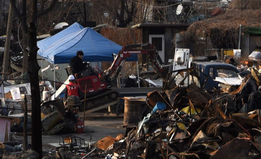A view looking over the wreckage toward the heavily developed skyline of Gangnam to the north.