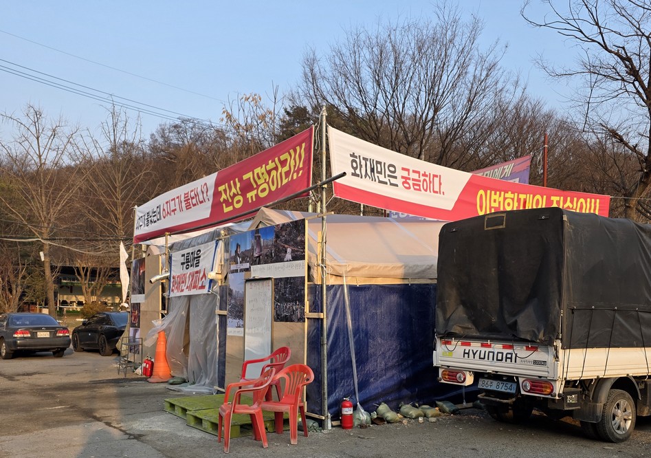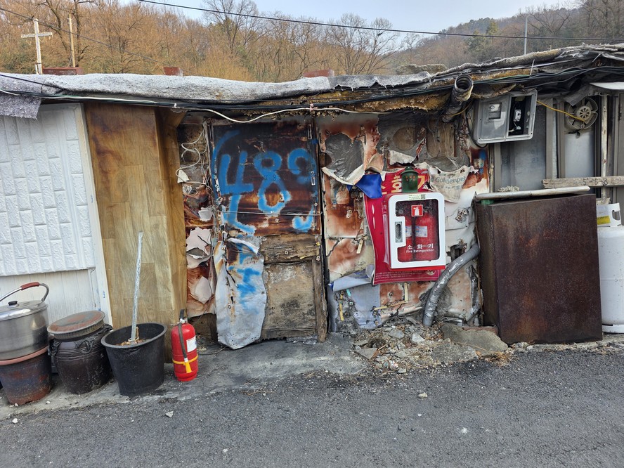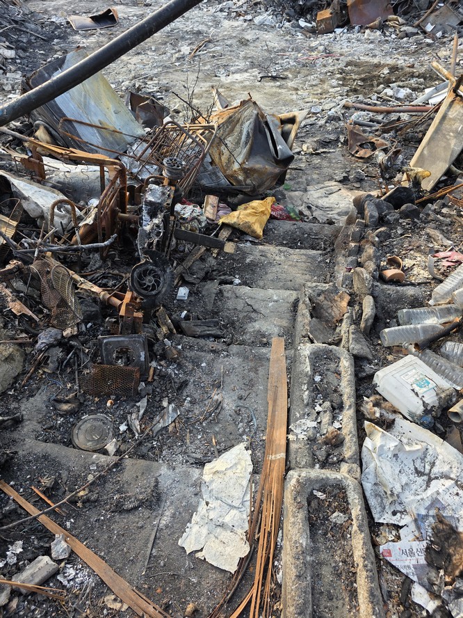This was the most iconic thing I saw, a pole with a fire extinguisher that had snapped in half, presumably due to the fire.