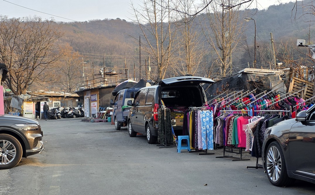Near the entrance, there were these racks of colourful ajumma clothes set up.