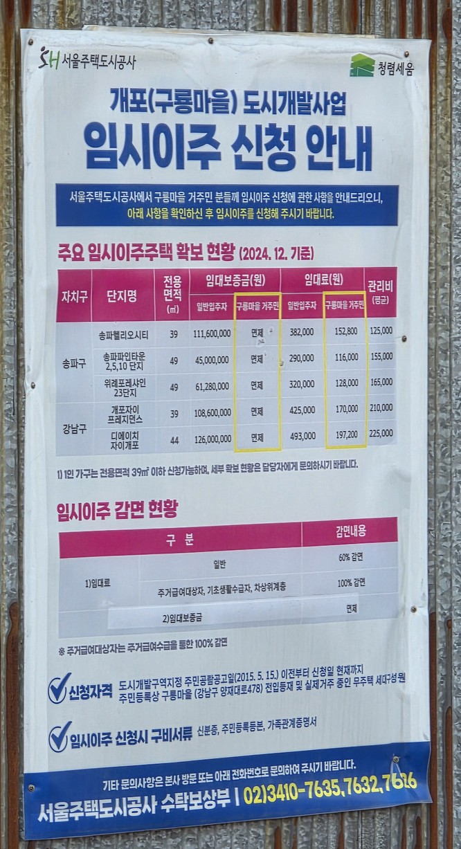 This shows information on relocation housing, and lists rent costs.