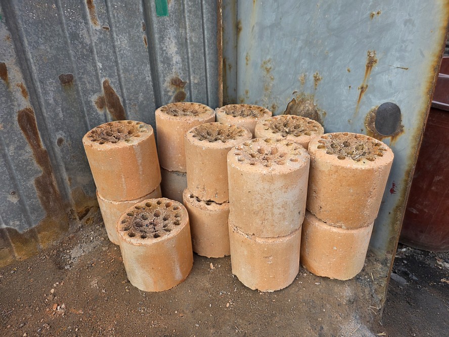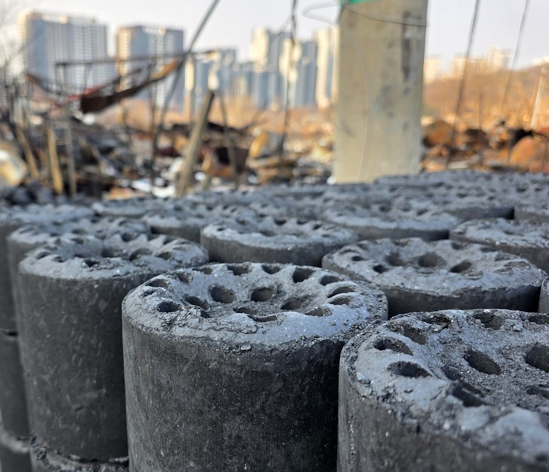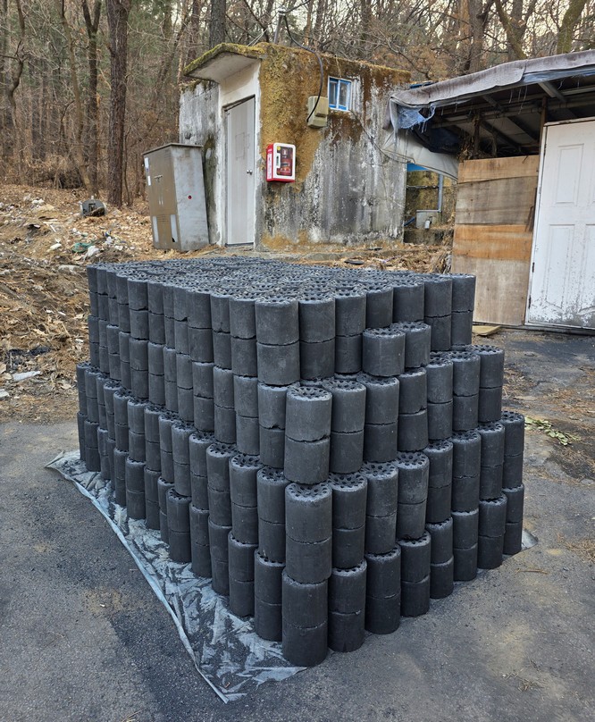 On this road, I saw a large stack of charcoal briquettes.