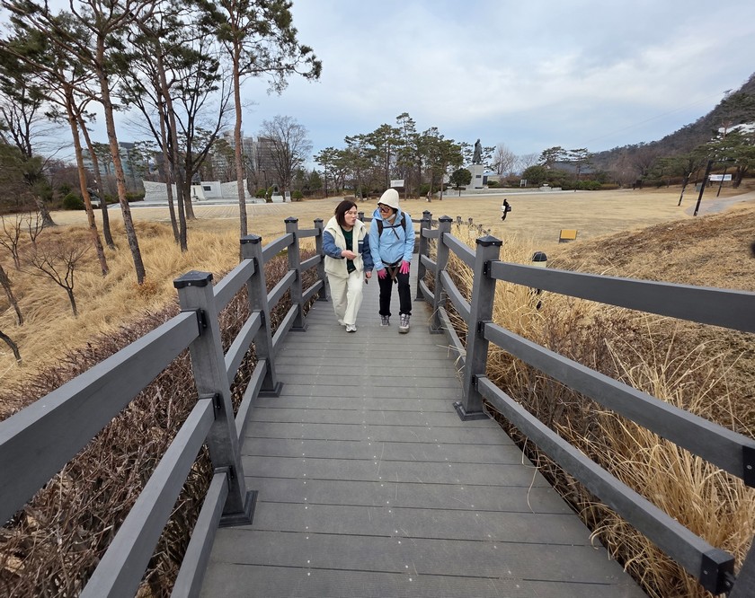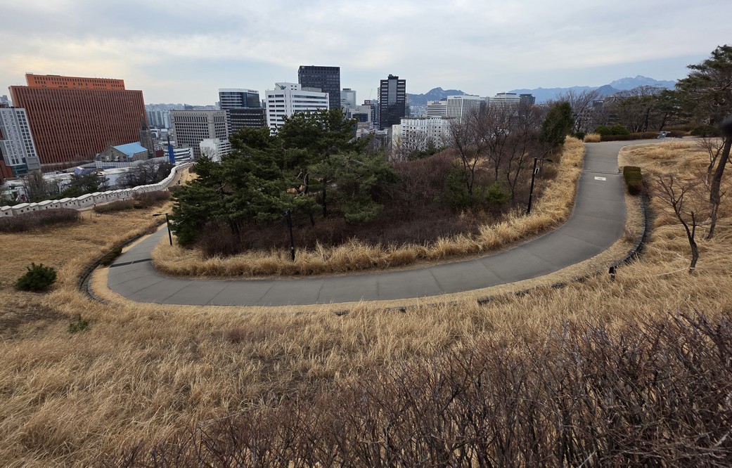 A tree peninsula in the park.