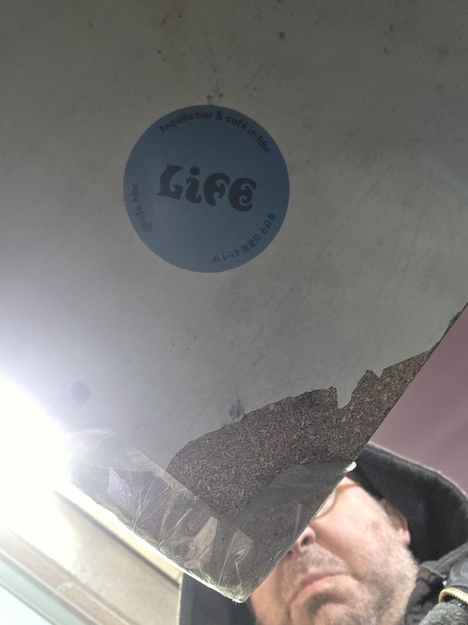 There is now a Life sticker underneath one of the convenience store tables.