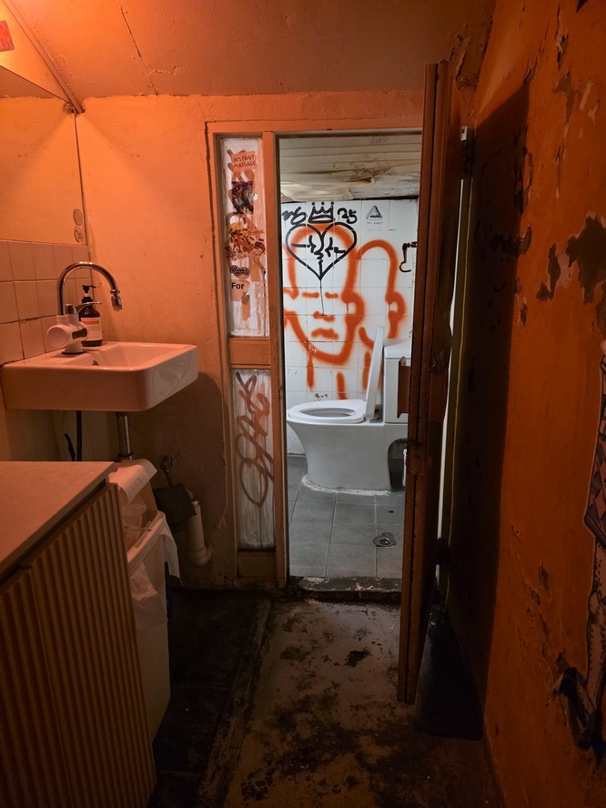 There was some discussion about the low ceiling in the Social Haven washroom. Apparently there are some people who turn around and enter it backwards, ass-first. I assume they can tell if someone's in there before it's too late.