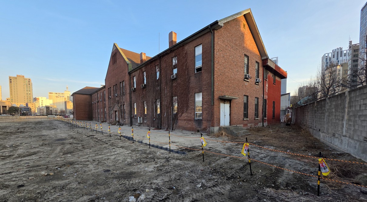 This huge dirt lot with one brick school building in it used to belong to the US Army Corps of Engineers, but they moved out sometime in the 2010s, and everything was destroyed except for this one historic building. I got up nice and close, then I got closer, then I got out of there quickly.