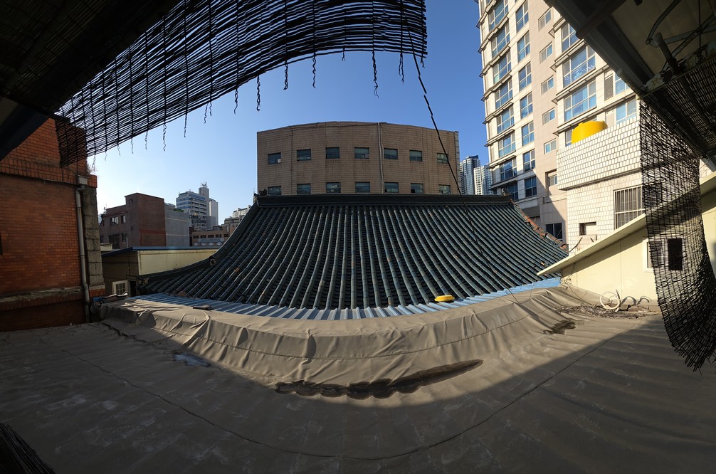 On the way home from the vet, I stopped in Jungnim-dong, where I'd been observing advances in destroying the area. Although I'd been focusing on one side of the area before, this time I went in under another blanket, and entered into an alley full of old Hanoks converted into restaurants, as well as a church.